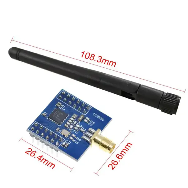 Модуль на базі чіпа CC2530 — це високоефективне рішення для створення бездротових мереж стандарту ZigBee та IEEE 802.15.4. Цей трансивер розроблений для завдань, що потребують низького енергоспоживання та високої надійності передачі даних. Завдяки наявності зовнішньої знімної антени довжиною 108.3 мм, пристрій забезпечує стабільний зв’язок на значній відстані, що є критичним для систем автоматизації будівель та промислових датчиків.