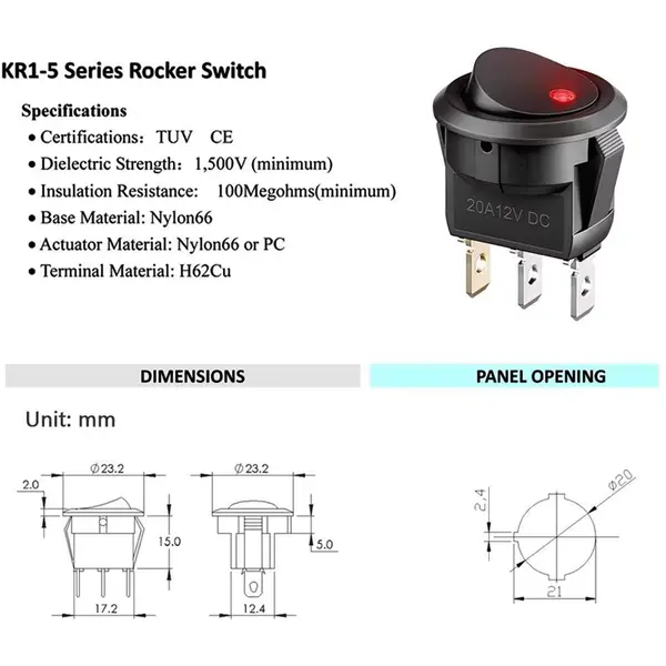 Компактний та надійний рокерний перемикач для керування електронікою в автомобілі, човні або DIY-проєктах. Вбудована LED-індикація загоряється при увімкненні, що дозволяє легко контролювати роботу пристроїв у темряві.