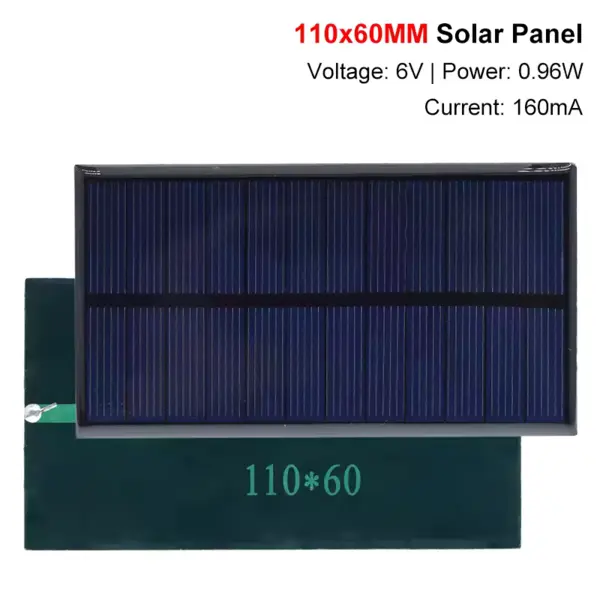 Якщо ви плануєте купити сонячну панель 6V для навчального проекту або домашньої автоматизації, модель 110×60 мм стане оптимальним вибором за співвідношенням ціни та продуктивності. Струм у 160 мА дозволяє використовувати її як джерело енергії для датчиків руху, садових ліхтарів або невеликих радіоприймачів. На тильній стороні передбачені контактні майданчики для зручного паяння дротів, що робить монтаж швидким навіть для майстрів-початківців.
